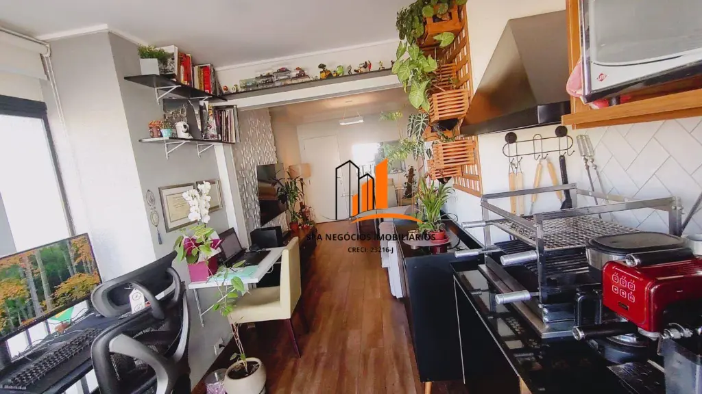 Cozinha, sala de jantar, sala, sacada gourmet, 2 banheiros sendo uma suite, 2 quartos