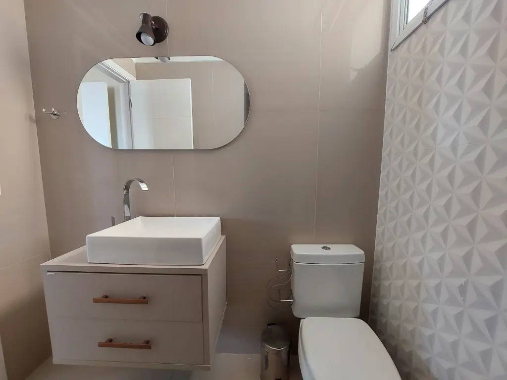 O piso em porcelanato em todos os ambientes oferece sofisticação e fácil manutenção.
