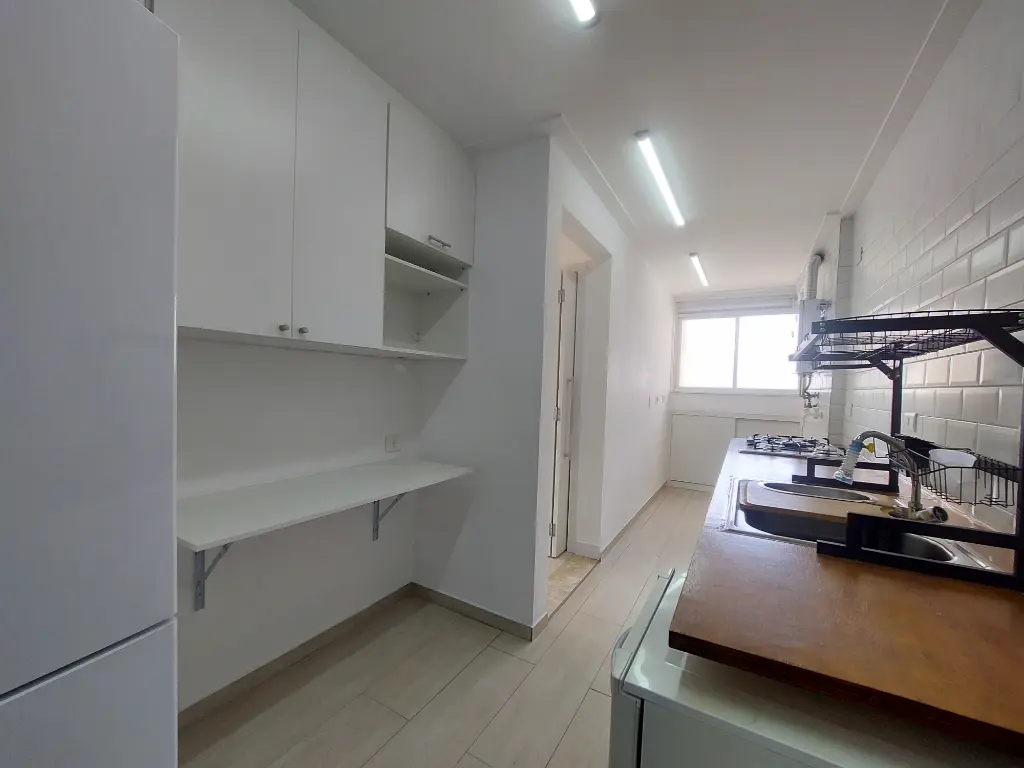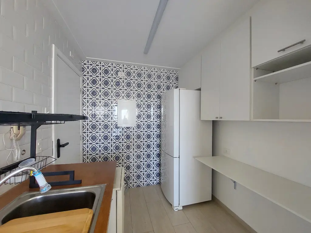 A cozinha é um dos grandes destaques do apartamento: moderna, charmosa e muito bem planejada, com detalhes em azulejo português que trazem um toque de elegância e estilo.