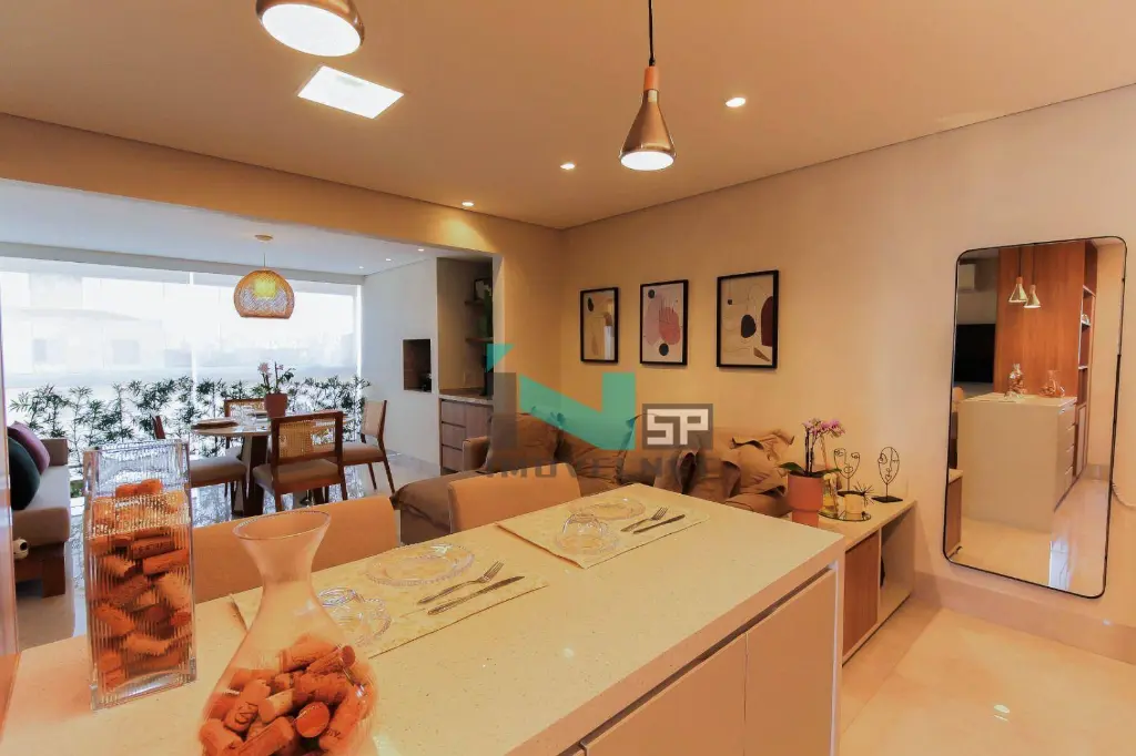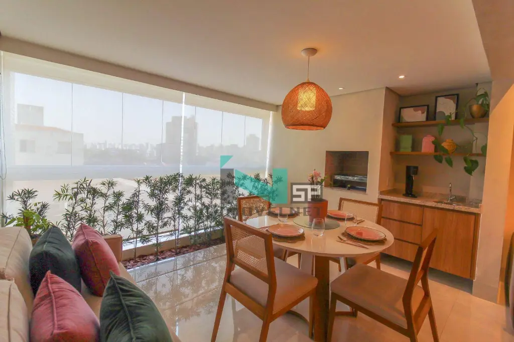 O apto está com 2 quartos e 1 suite com guarda-roupas embutidos impecáveis, sendo um deles, com espelho de mais de 2 metros, quartos e sala com ar condicionado inteligente que pode ser comandado via celular. Banheiros com torneira água quente-fria e box, na sala, televisão Samsung 55 com soundbar JBL 2.1 canais, sofá retrátil e na área gourmet, churrasqueira, mesa com 4 cadeiras e sofá para 2 pessoas e um belo jardim, cozinha com móveis embutidos com geladeira Side By Side, Adega para 8 garrafas, Máquina de lava louças, Forno imbuído 47L, Fogão 5 bocas com acendimento automático, filtro de água gelada, microondas e triturador de pia, e lavanderia com máquina lava roupas- Venda porteira fechada- Única dona- 2 vagas de garagem- Sol da manhã.
