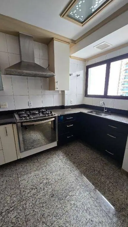 Cozinha grande, planejada, bem iluminada e com janela