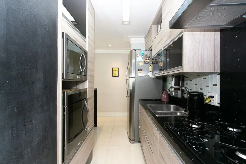 Vamos deixar o sofá, coifa, cooktop, forno e micro-ondas.
