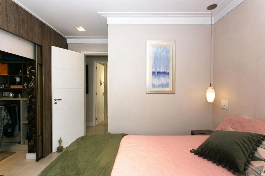 A suíte também conta com caixas de som embutidas, reforçando o conforto do ambiente.