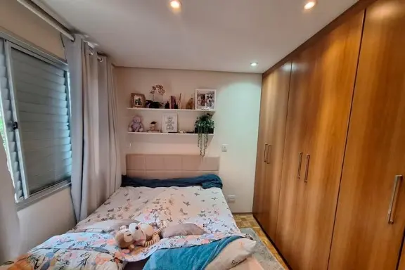 Apartamento (com agua já incluso) com face norte, contando com sol da manhã em todo o imóvel, possui dois dormitórios com armários planejados, sala para dois ambientes com sacada (livre), cozinha e área de serviço com armários planejados, banheiro, piso de madeira (tanquinho) e porcelanato nas área frias, além de contar com uma vaga para automóvel. É possível fazer a integração da sala com a sacada, pois a parede não é estrutural fechando a sacada com vidros deslizantes e também pode-se fazer a cozinha americana.