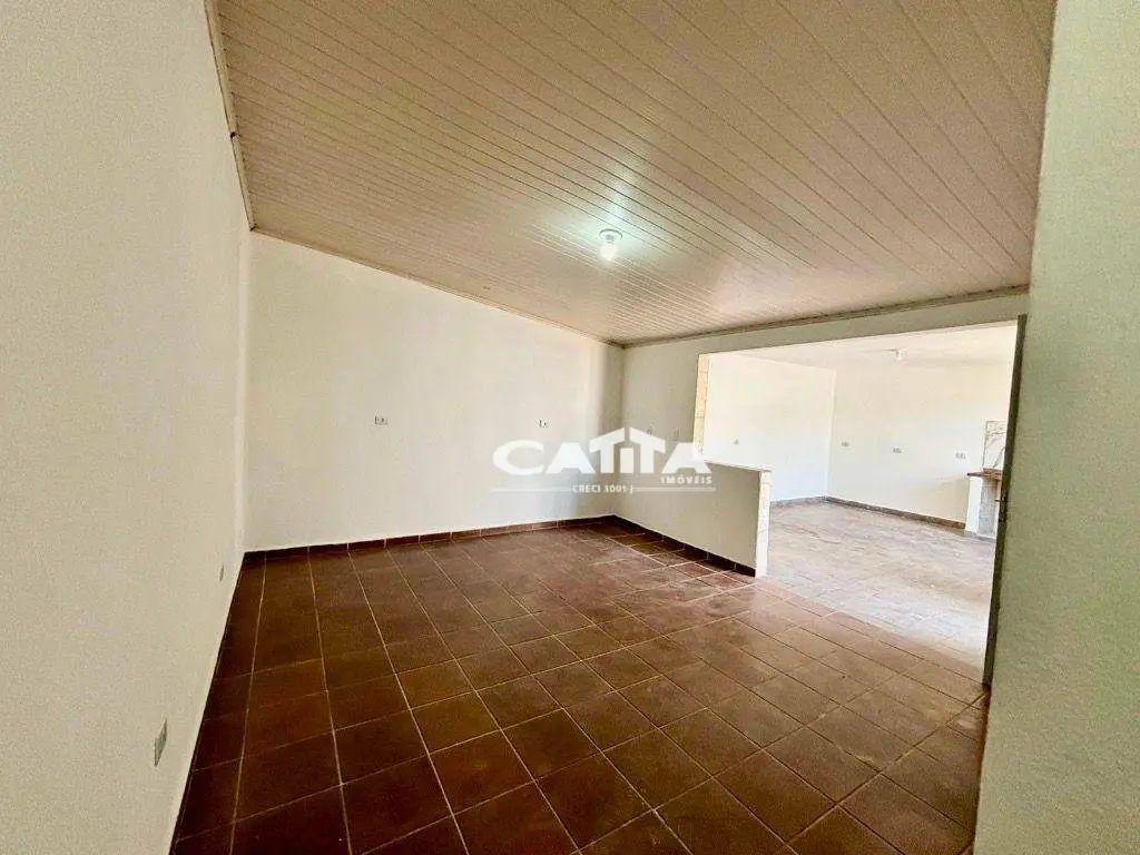 Casa com sala, cozinha, dormitório e banheiro, além de lavanderia coberta, espaço coberto que pode ser aproveitado como deposito e terraço.