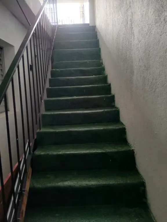 OBS: a casa é descendo as escadas, não é essa da frente.