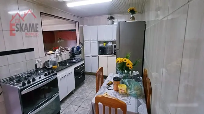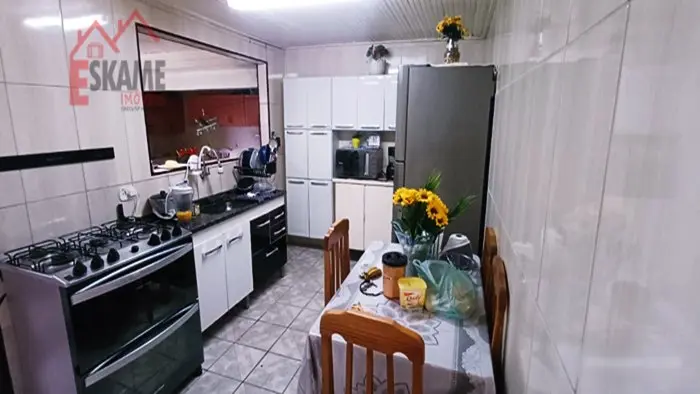Dois dormitórios, sala de estar, sala de jantar, cozinha, wc, lavandeira, área com churrasqueira e duas vagas de garagem.