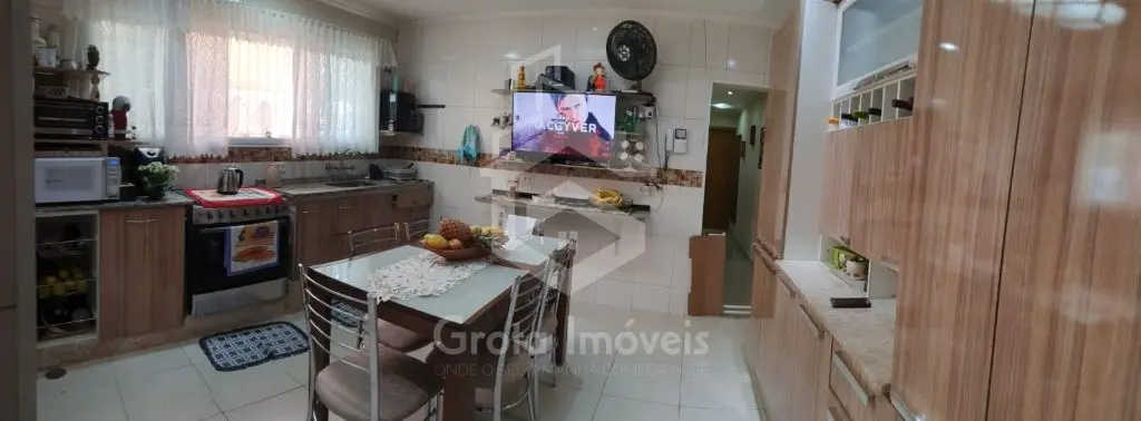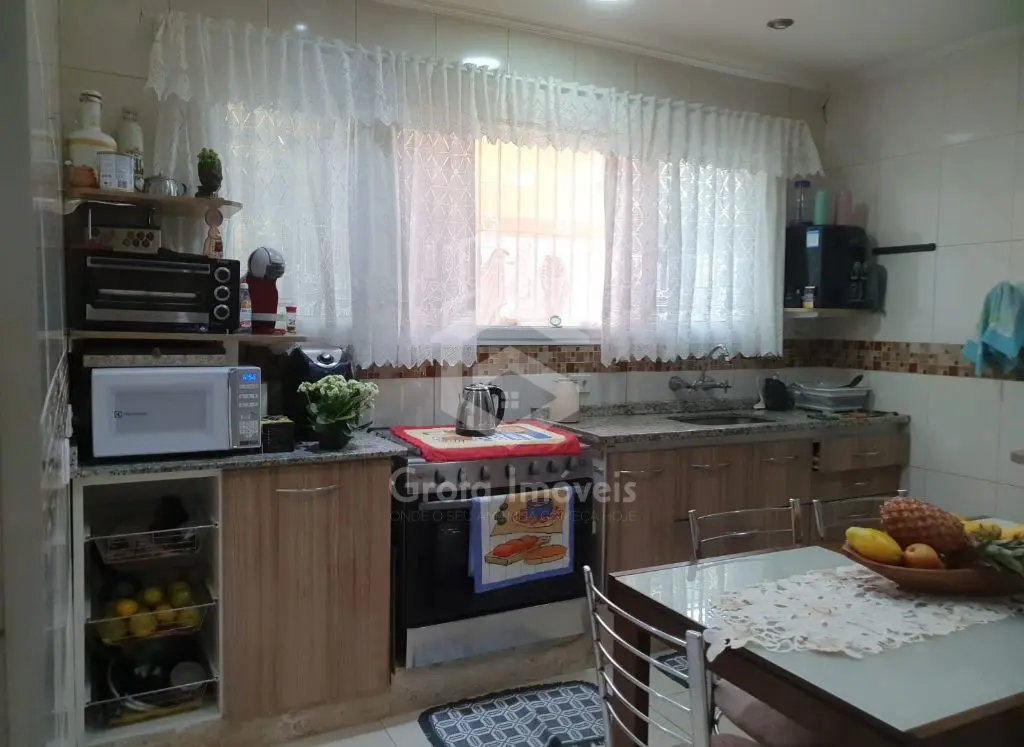 Casa com 3 dormitórios, sendo 1 com móveis planejados, sala, cozinha com móveis planejados, área de serviço e 2 banheiros.