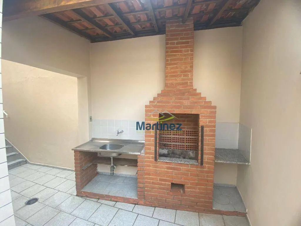 Casa andar superior: 1 Suíte, salão aproximadamente 30 m², despensa, corredor lateral, lavanderia, espaço gourmet com churrasqueira.