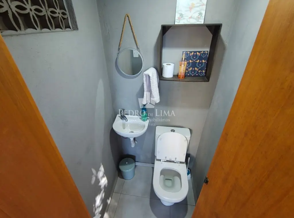 2 Quartos sendo 1 suite, Sala Integrada com a cozinha e armarios, 1 banheiro social, vaga para 2 carros, corredor lateral, quintal com espaço gourmet e churrasqueira. Muito bem localizado.