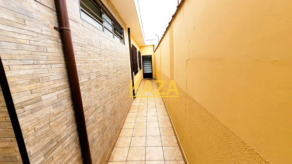 A sala de estar é ampla e iluminada naturalmente, perfeita para receber amigos ou relaxar em família. O corredor lateral garante ventilação e iluminação em toda a casa, aumentando o conforto.