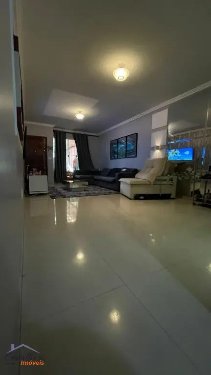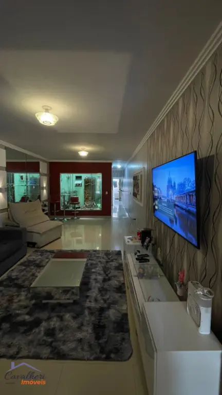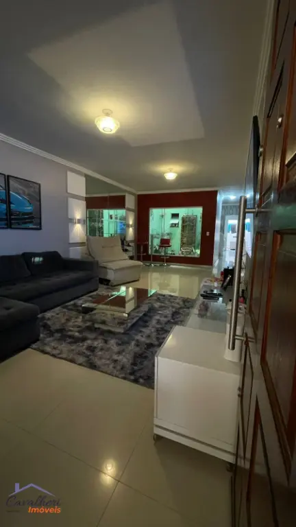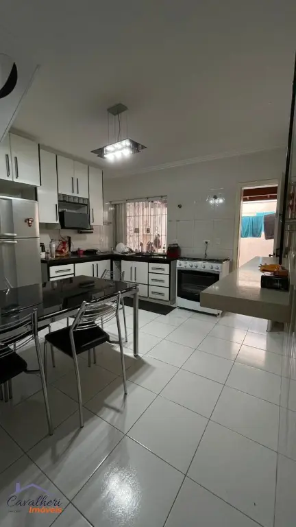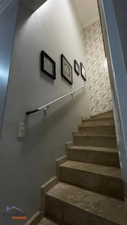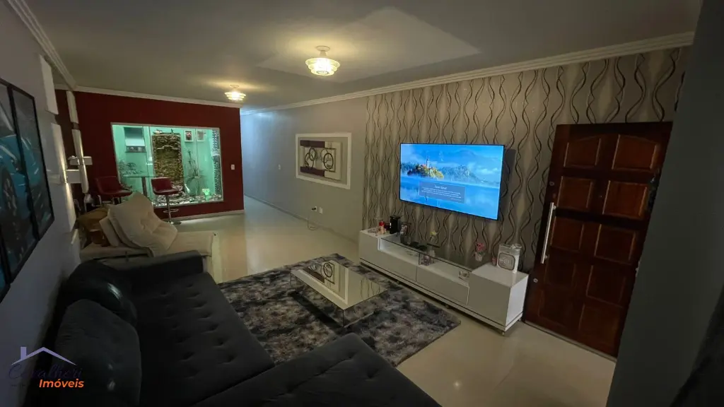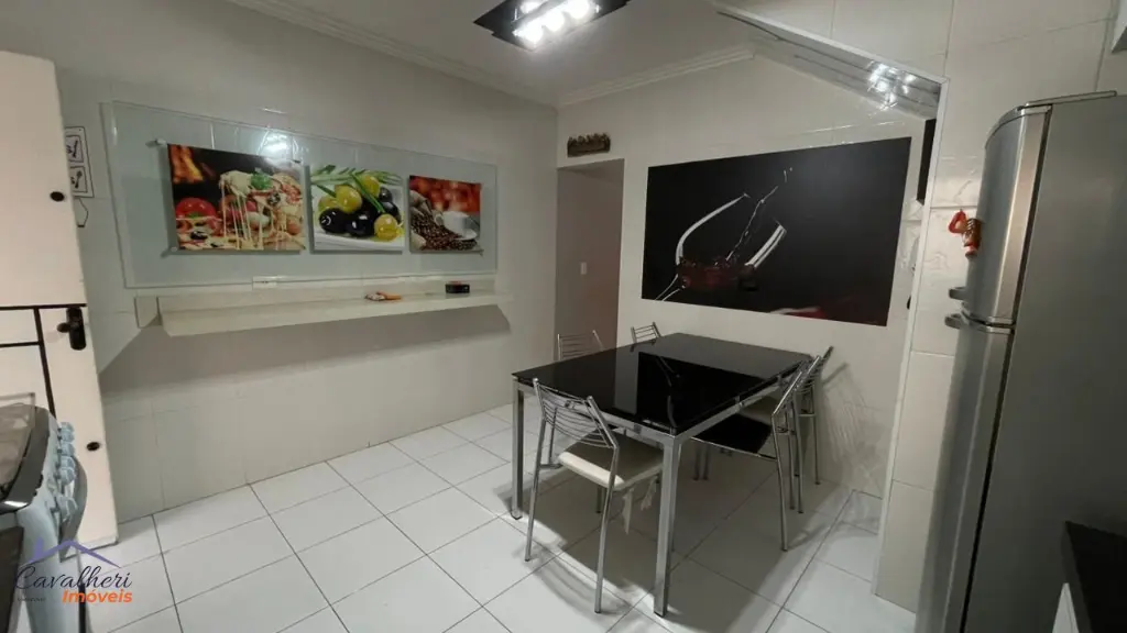 3 dormitórios com armários sendo 1 com suíte e varanda, sala 2 ambientes com lavabo, banheiro com gabinete, cozinha com armários, área de serviço, quintal com churrasqueira e 2 vagas.