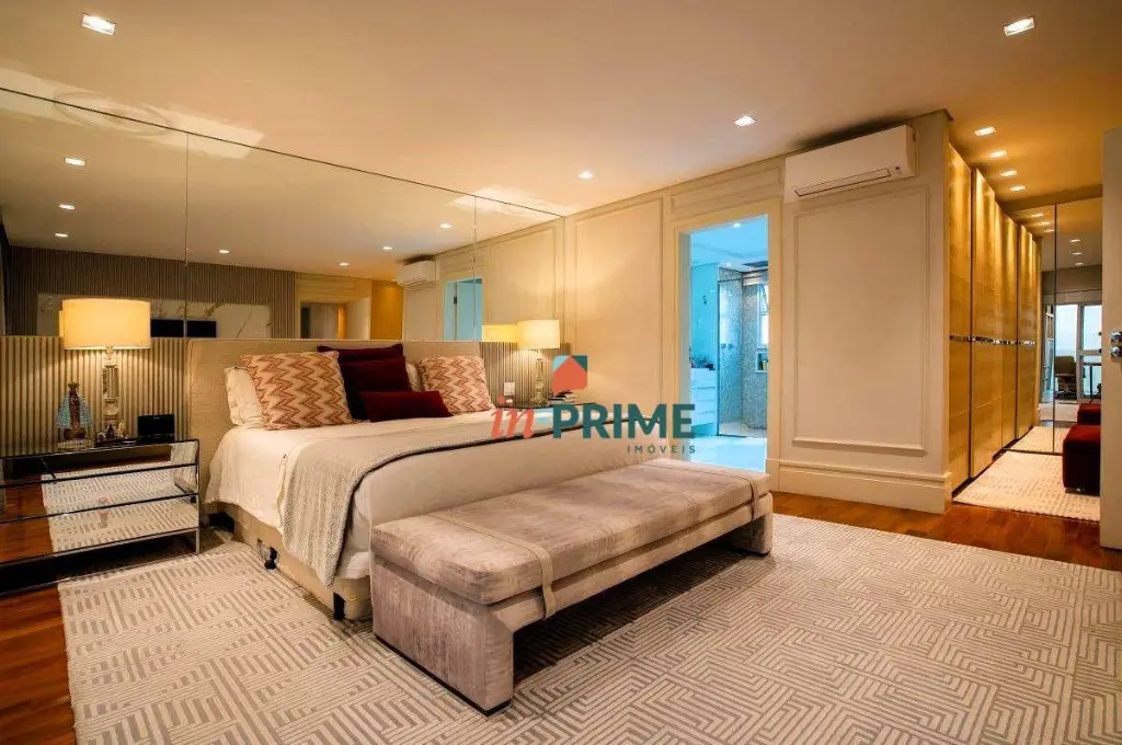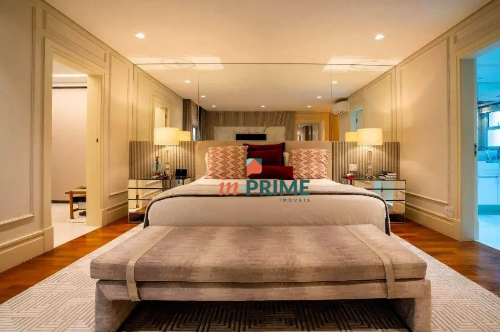 São três suítes amplas e muito bem iluminadas, cada uma com atmosfera de refúgio e privacidade, além de um escritório planejado com discrição e funcionalidade, perfeito para um home office de alto nível. O imóvel atende com sobra às necessidades da família.