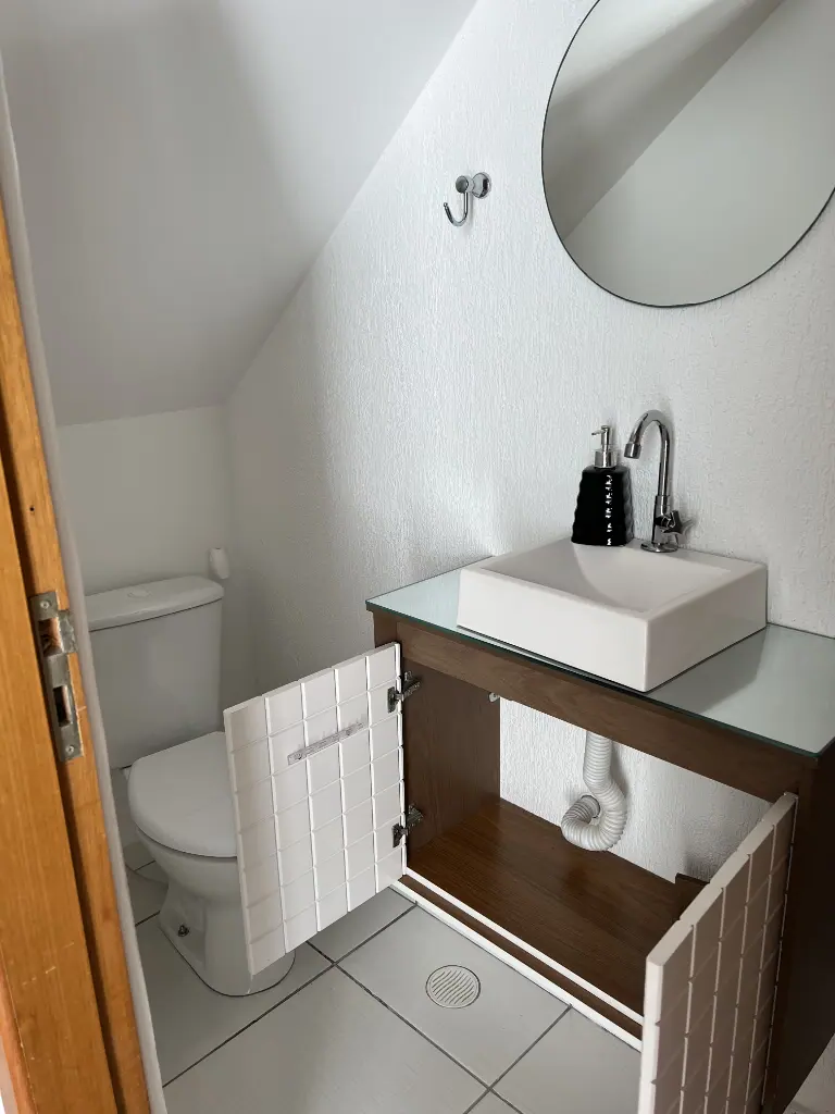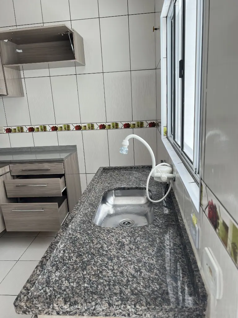 Belíssimo sobrado em condomínio fechado com 2 Dormitórios, sala, banheiro, lavabo, lavanderia bem espaçosa, cozinha com armários, garagem coberta