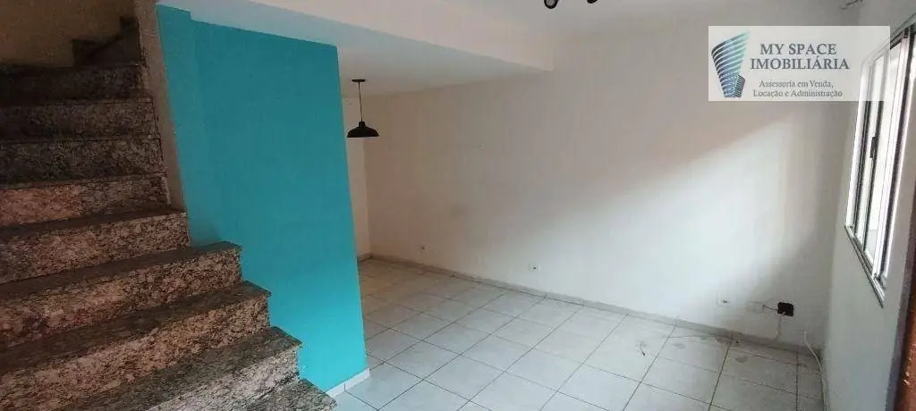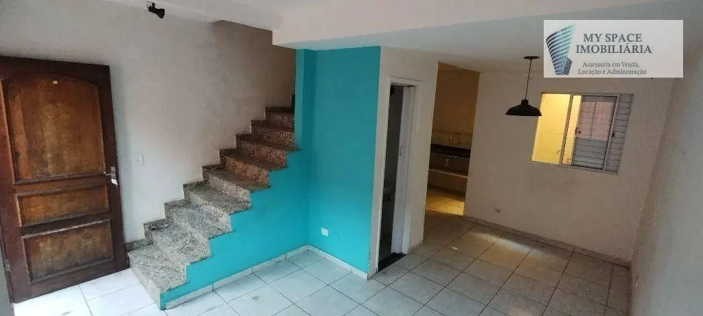 Sobrado em condomínio fechado com 2 dormitórios, sendo 1 suite, sala para 2 ambientes, lavabo, cozinha, quintal com área de serviço, sala de tv com terraço, 2 banheiros sociais e 1 vaga de garagem.