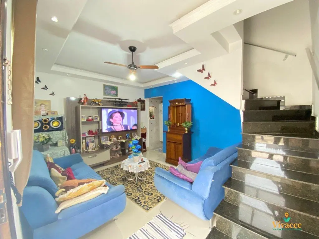 Possui 02 dormitórios, sendo 02 suítes, sala 02 ambientes com painel, cozinha cozinha com armários, área de serviço coberta, lavabo, escada em granito, 01 vaga de garagem descoberta fixa e livre.