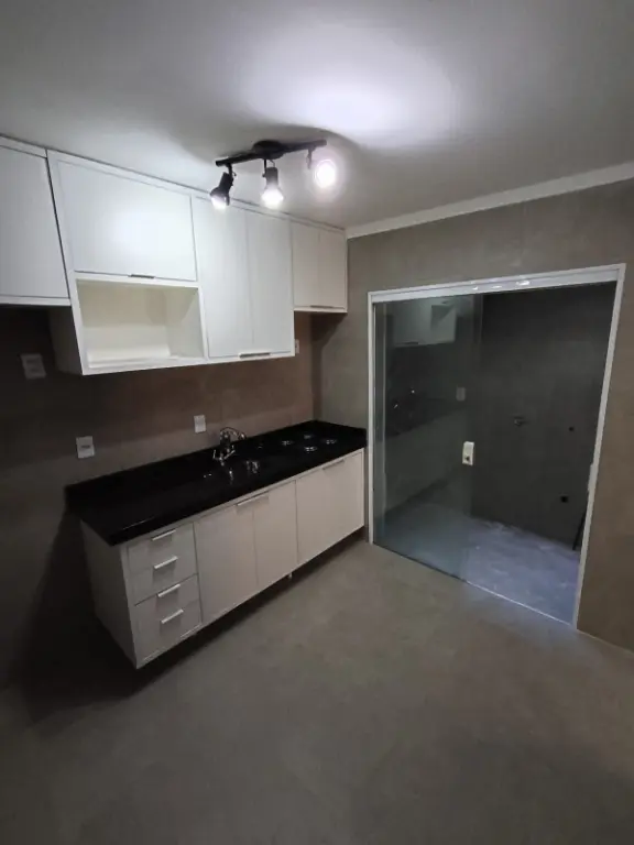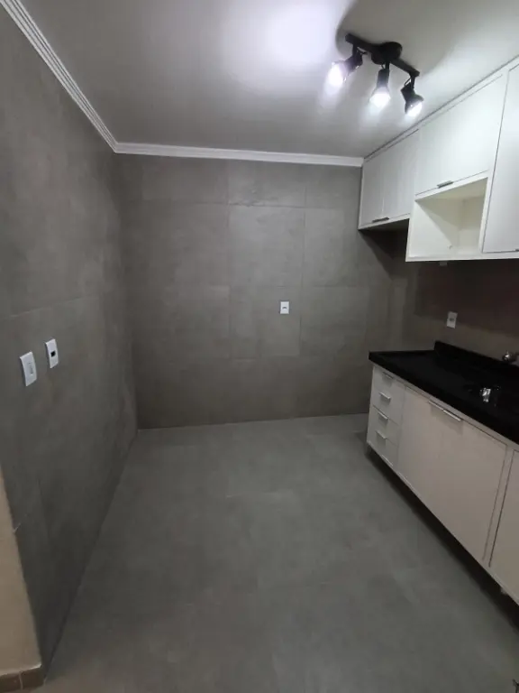 Dois quartos, sala cozinha, área de serviço, uma vaga de garagem