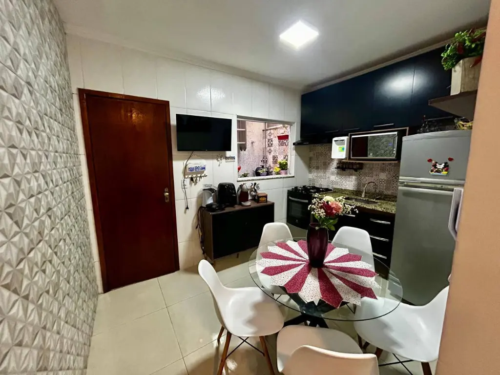 O interior impressiona pela integração entre os ambientes: sala ampla e cozinha planejada, em conceito aberto, criando uma atmosfera moderna e acolhedora.