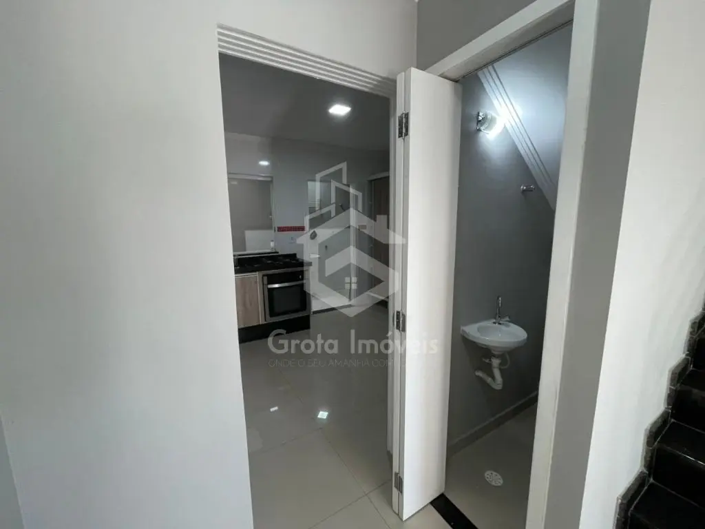 Lindo sobrado com 128m², 04 dormitórios, sendo 03 suítes, lavabo, 02 vagas de garagem, móveis planejados, fogão cooktop e sacada envidraçada.