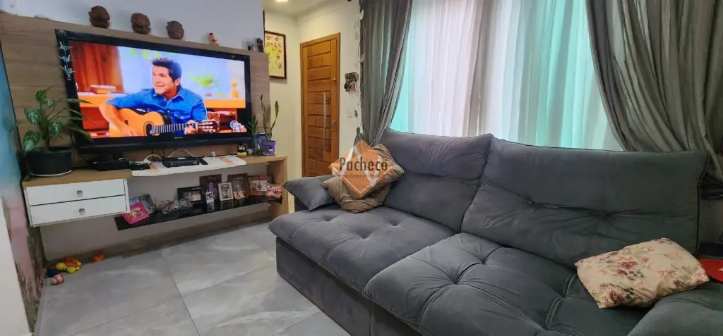 Sobrado em condomínio fechado com 02 suítes com armários planejado, cama e ar condicionado, sala dois ambientes com sofá, cozinha planejada, 02 lavabos, área de serviço, espaço gourmet completo com churrasqueira e 02 vagas de garagem.