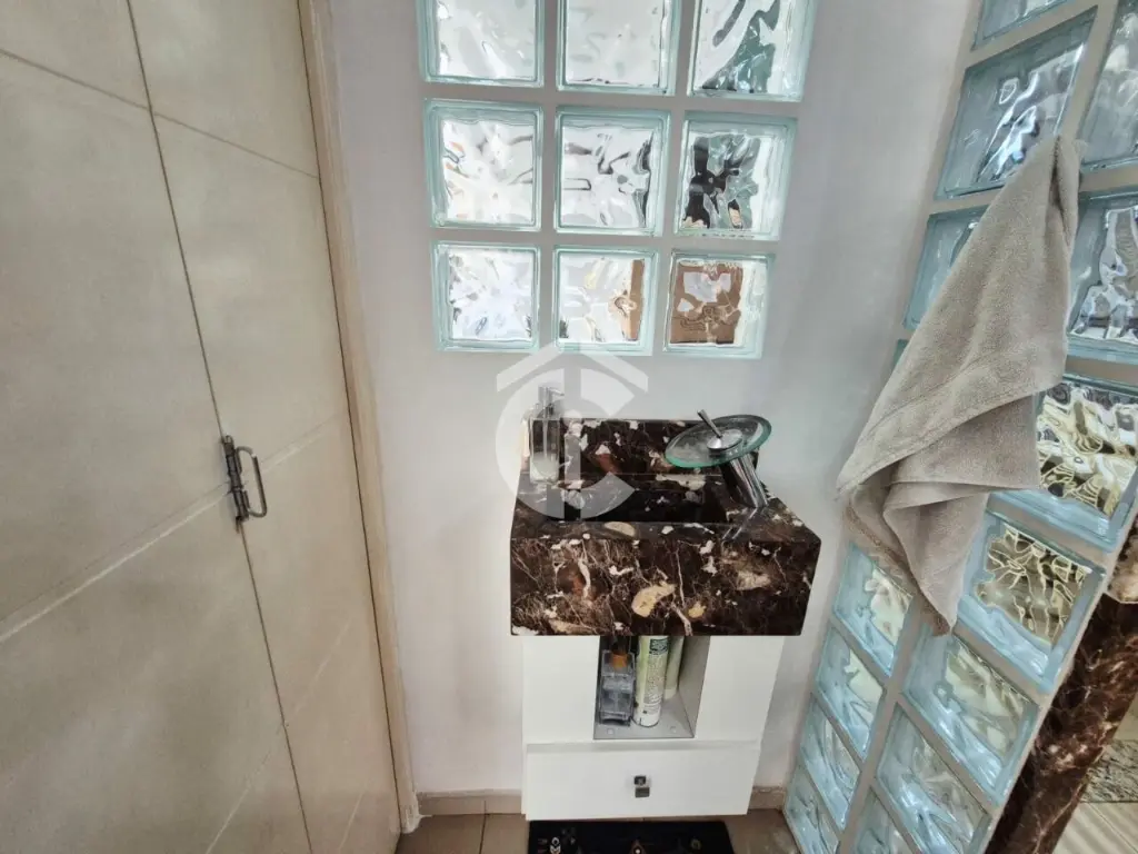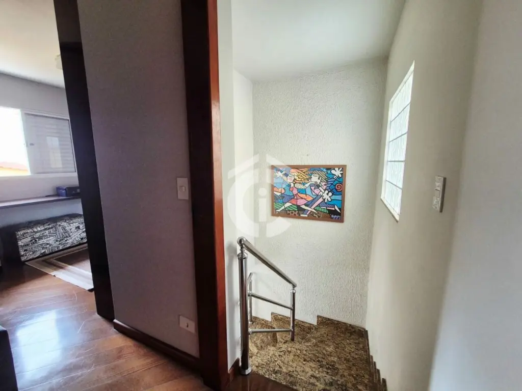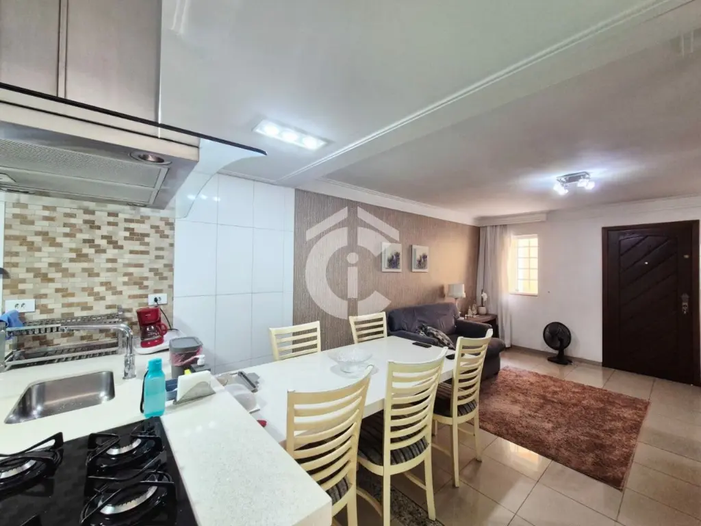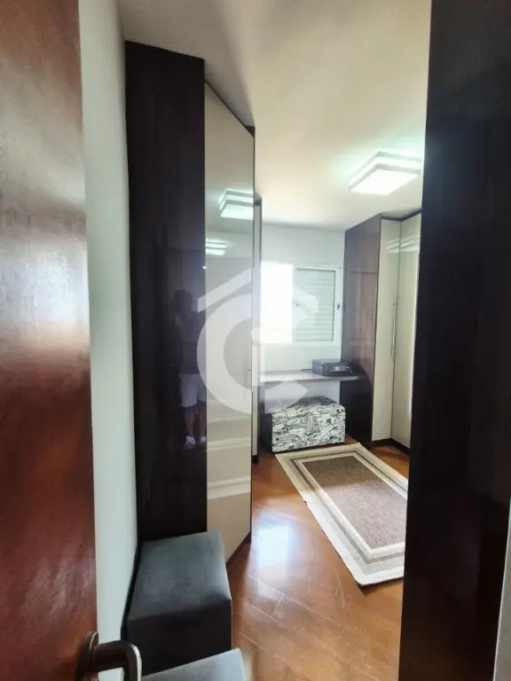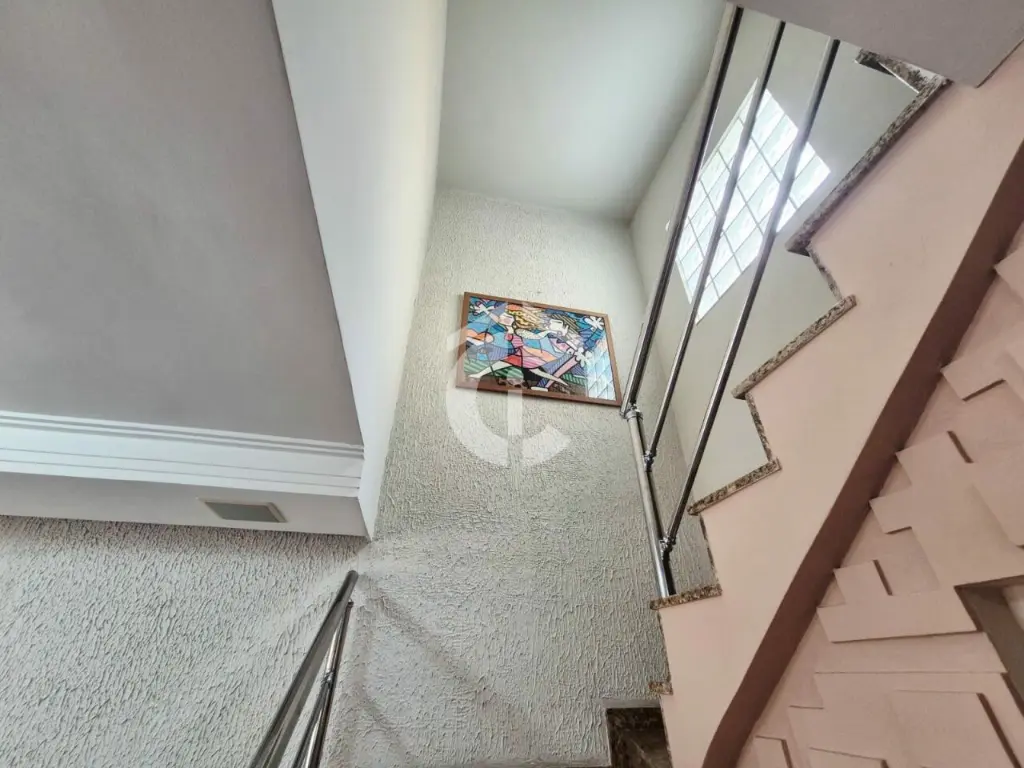 O imóvel é composto por sala para dois ambientes, lavabo, cozinha americana, lavanderia/quintal com churrasqueira, armários e Zetaflex, duas suítes, um quarto (de vestir), varanda e garagem coberta com três vagas.