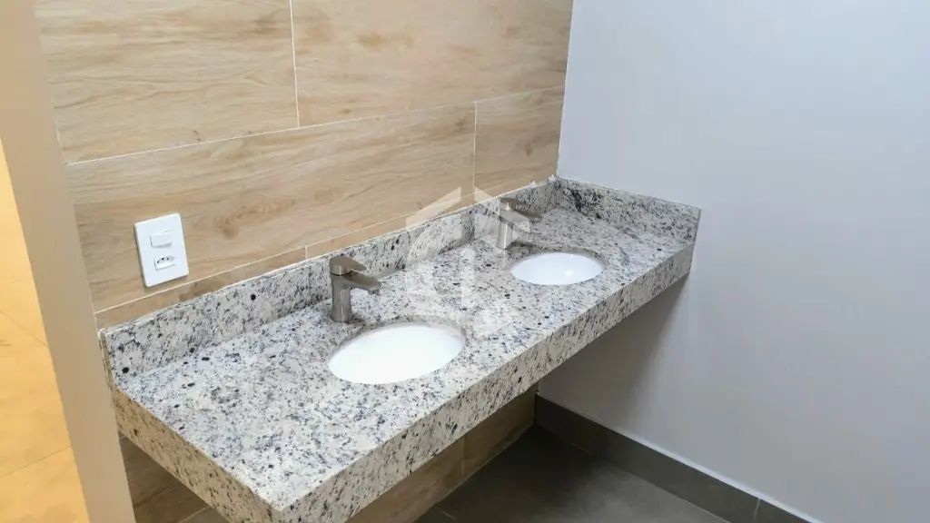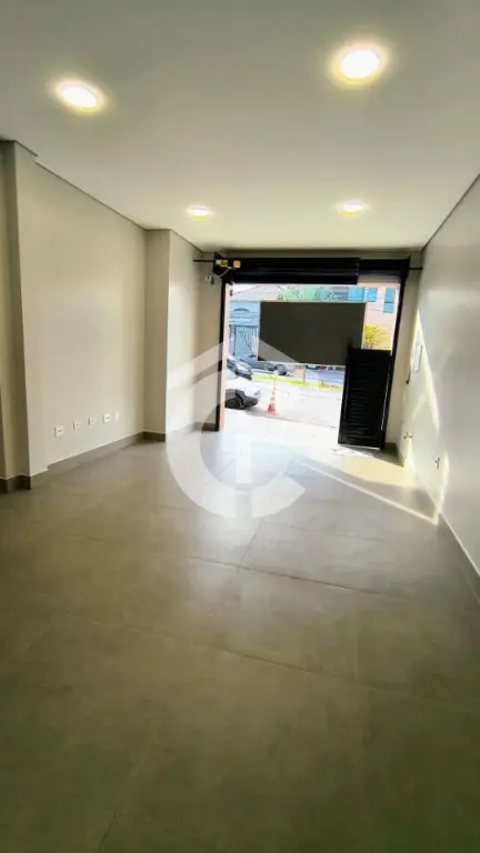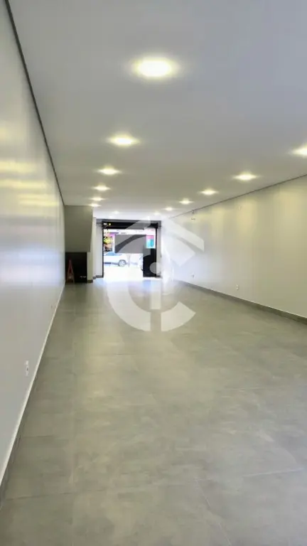 Salão comercial para locação com 200m² (130m² cobertos e 70m² descobertos), pé direito de 4 metros e 2 banheiros sociais. O imóvel possui estrutura em drywall, instalação elétrica 220V e 110V, iluminação LED, instalação hidráulica nova e porcelanato na área descoberta. Conta ainda com 2 portas de aço elétricas.