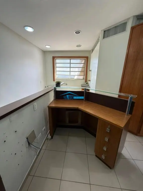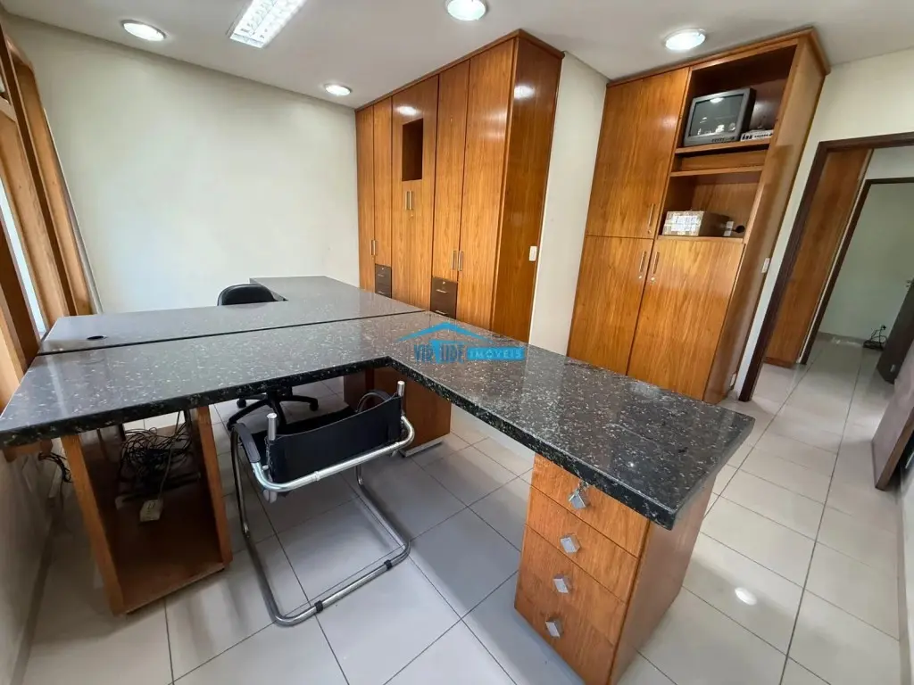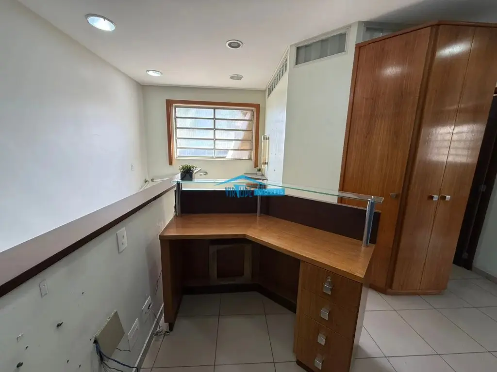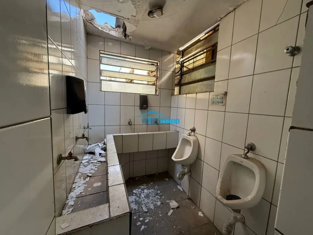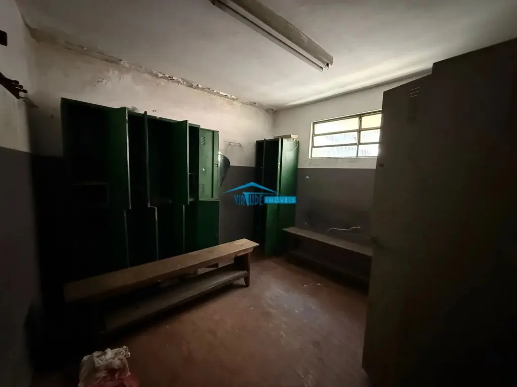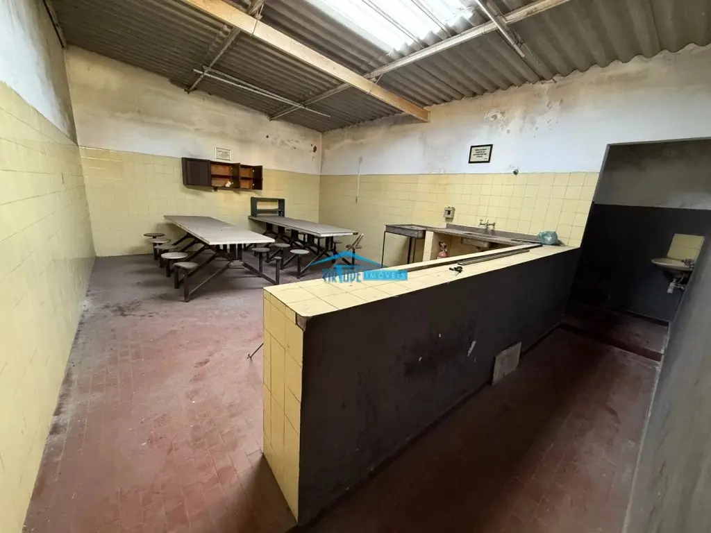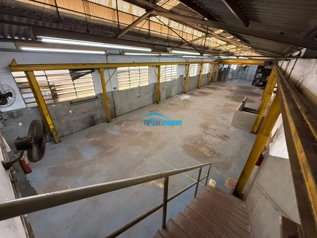 Salão com 930m², Piso Térreo com vão livre, ponte rolante, Piso superior com escritório, 4 salas e refeitório para funcionário e subsolo.