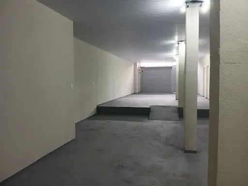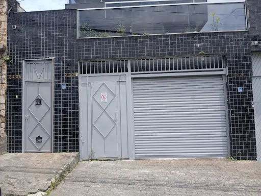 Possui porta de aço automática, permitindo a entrada de pequenos caminhões, além de porta social independente para pedestres. Localizado no nível da rua, sob uma residência, facilitando o acesso tanto para mercadorias quanto para clientes.
