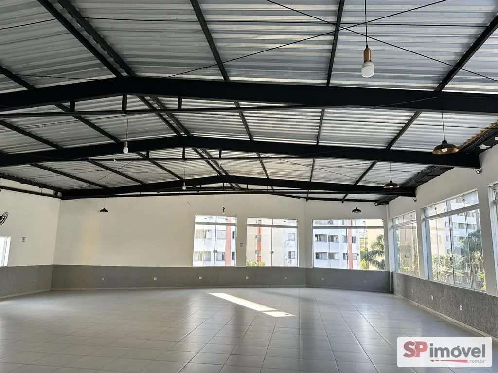 Salão comercial reformado, no 1º andar, piso superior, com 290m², vão livre, 2 banheiros e cozinha.