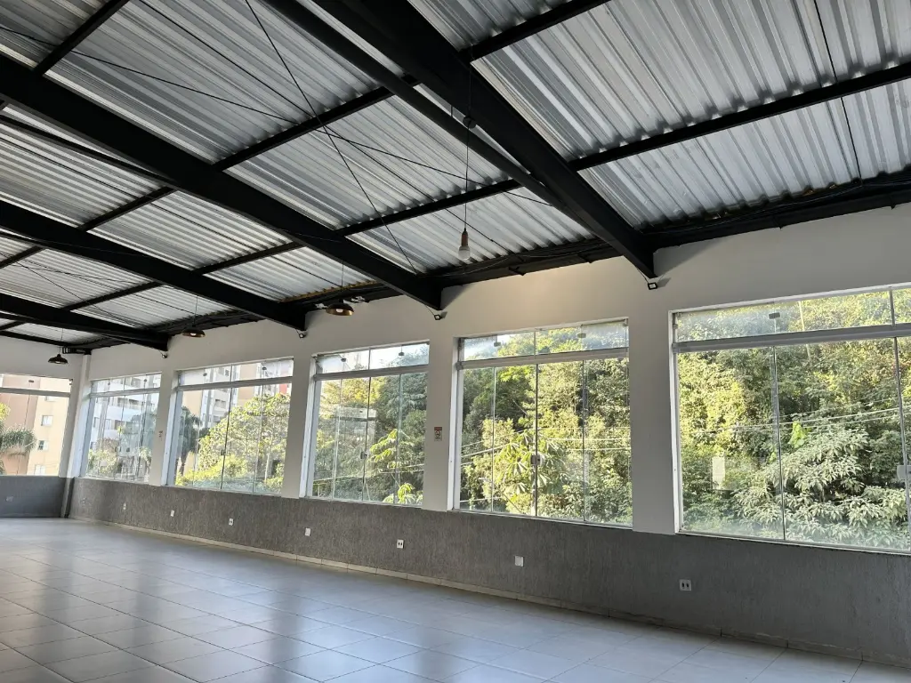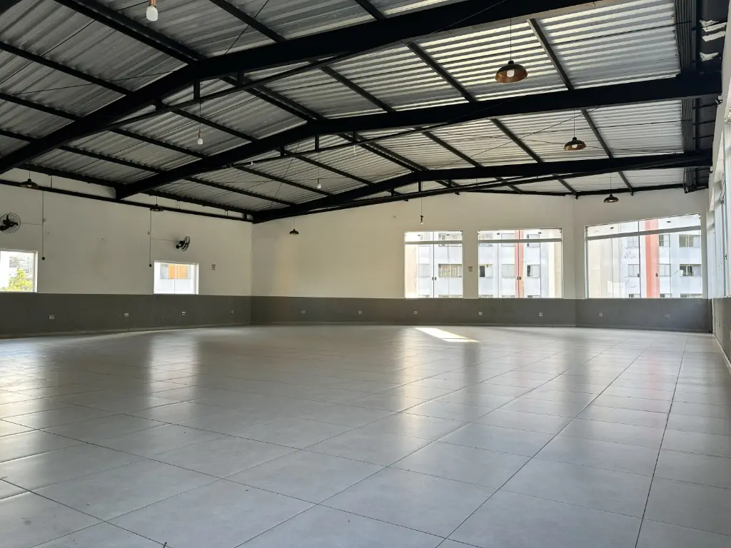 Salão Comercial "Reformado" no 1º andar, piso superior, com 290m², vão livre, pé direito alto, faixada com frente de vidro, com ótima iluminação e ventilação.
