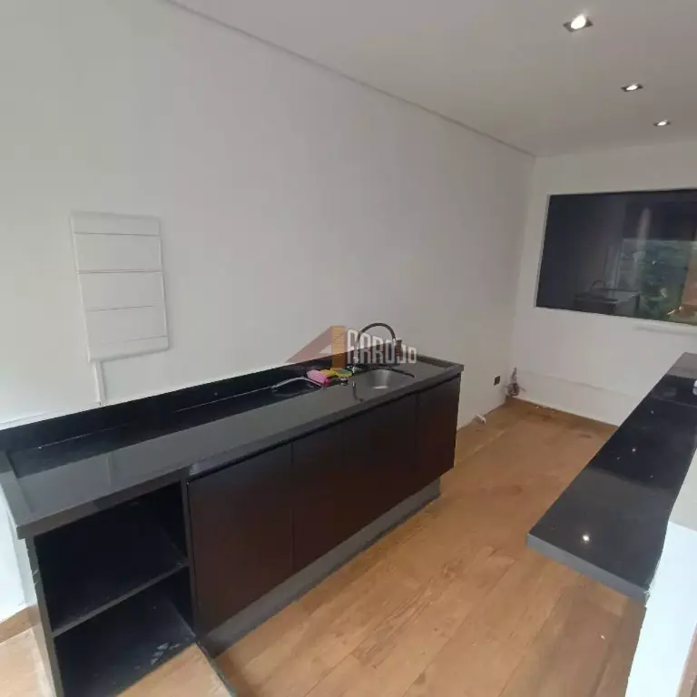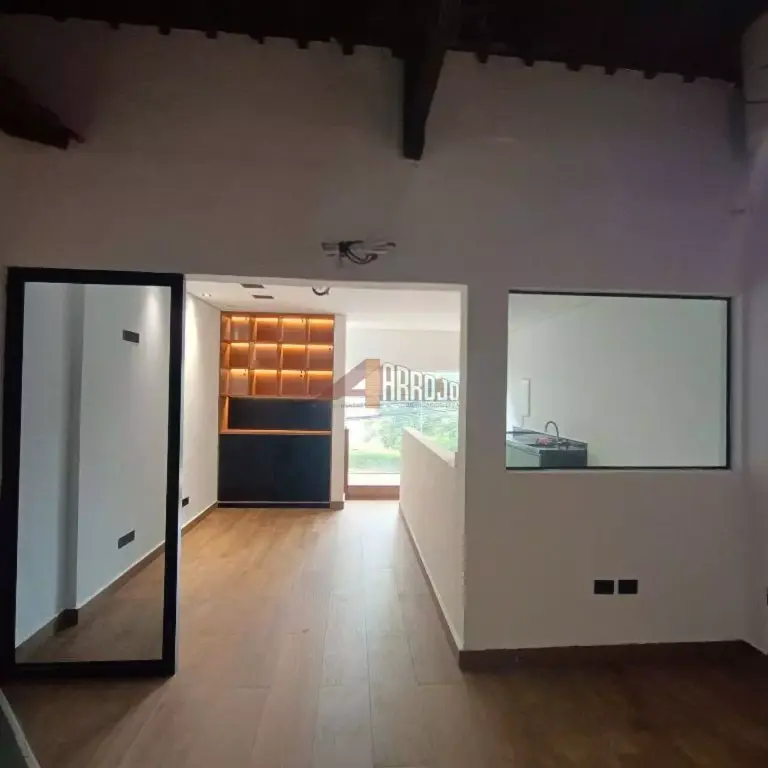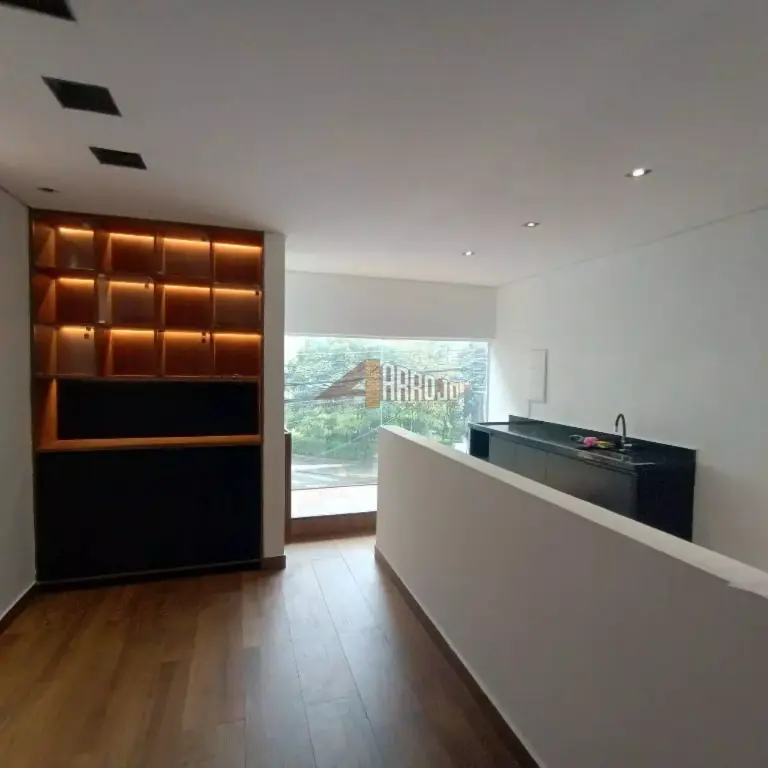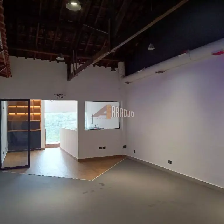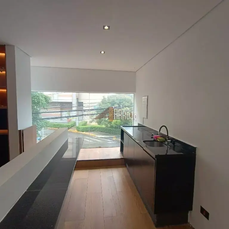 Piso térreo com 100 m2 e segundo piso com 100 m2, 4 salas, cozinha, vitrine e despensa.