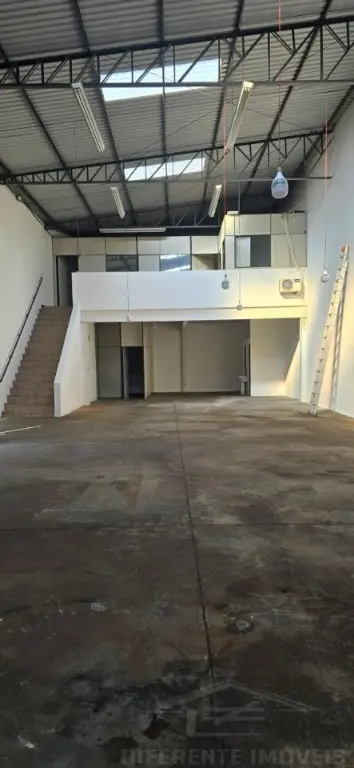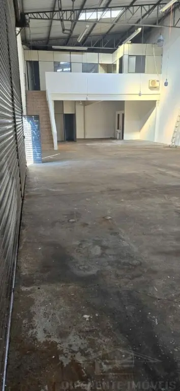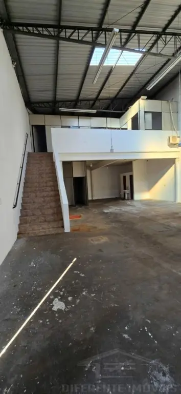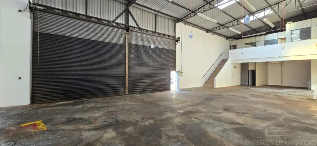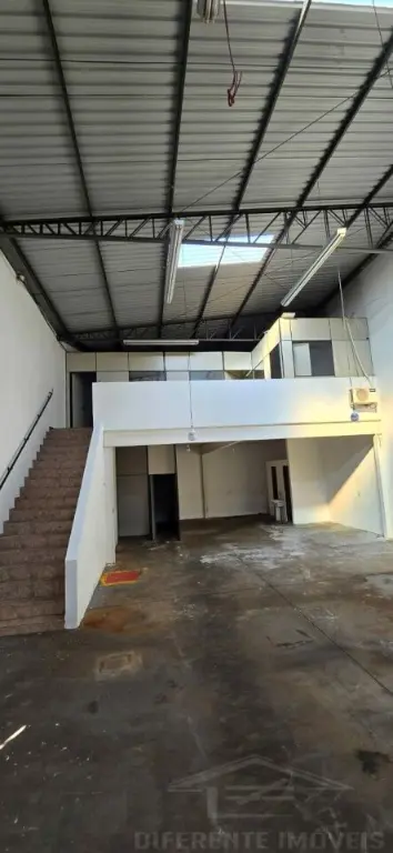 Galpão com 250 metros 7 m de pé direito, quatro banheiros 10 metros de porta automatizada mais mezanino com 80 m, três salas de escritório dois banheiros no mezanino