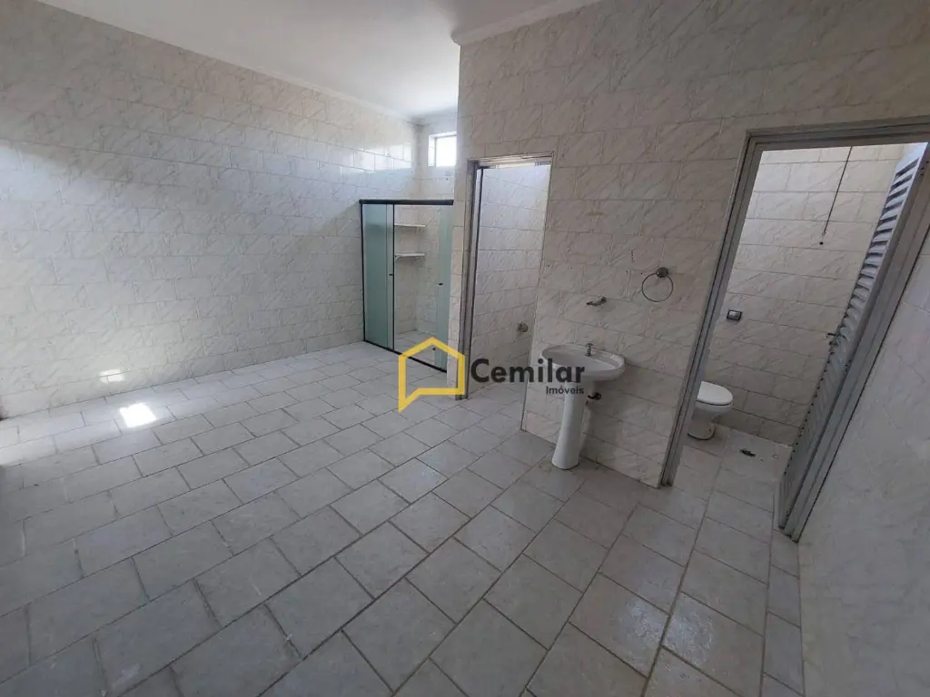 Excelente salão comercial (piso superior), possui uma sala na frente com banheiro, salão, 2 vestiários com 2 banheiros cada e cozinha!