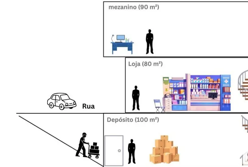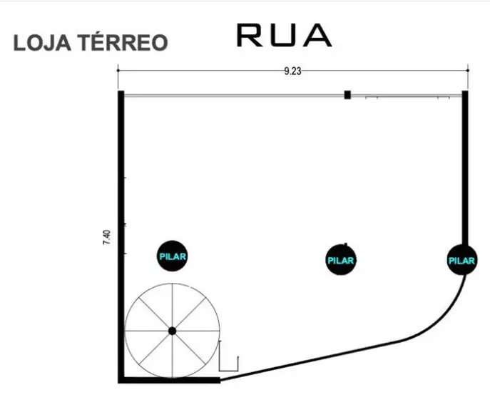 Loja comercial com uma área útil de 270 m², o imóvel se encontra desocupado e não mobiliado.