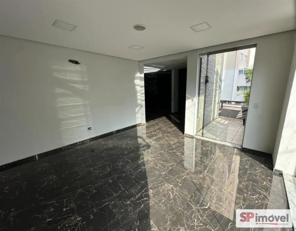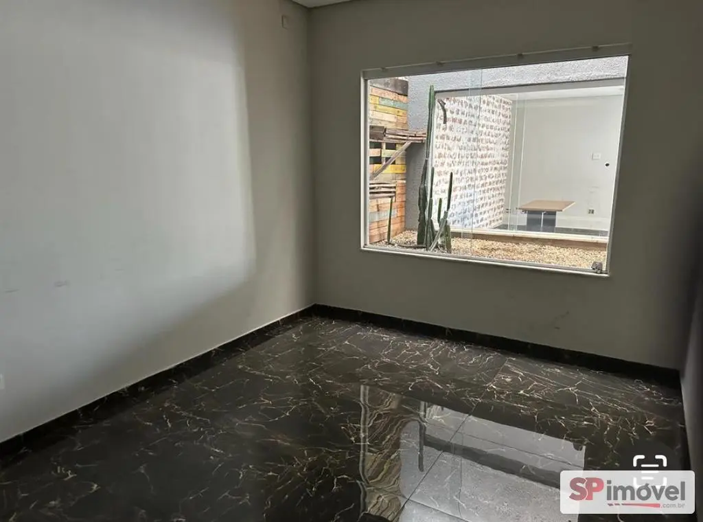 Piso sub solo com 3 salas, cozinha, 2 banheiros e espaço aberto para jardim.