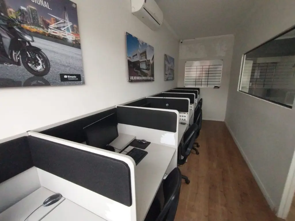 Espaço Comercial para Locação Térreo: Ampla recepção, sala de reuniões, auditório, lavabo e cozinha/refeitório totalmente equipada com 2 micro-ondas, geladeira e uma mesa para até 10 pessoas. Ideal para reuniões e eventos corporativos. 1 Andar: Sala 1: 7 estações de atendimento, ideal para equipes menores. Sala 2: 15 estações de atendimento, perfeita para equipes maiores. Conforto e Comodidade: Todas as salas possuem ar condicionado, garantindo conforto para os usuários em qualquer estação do ano.