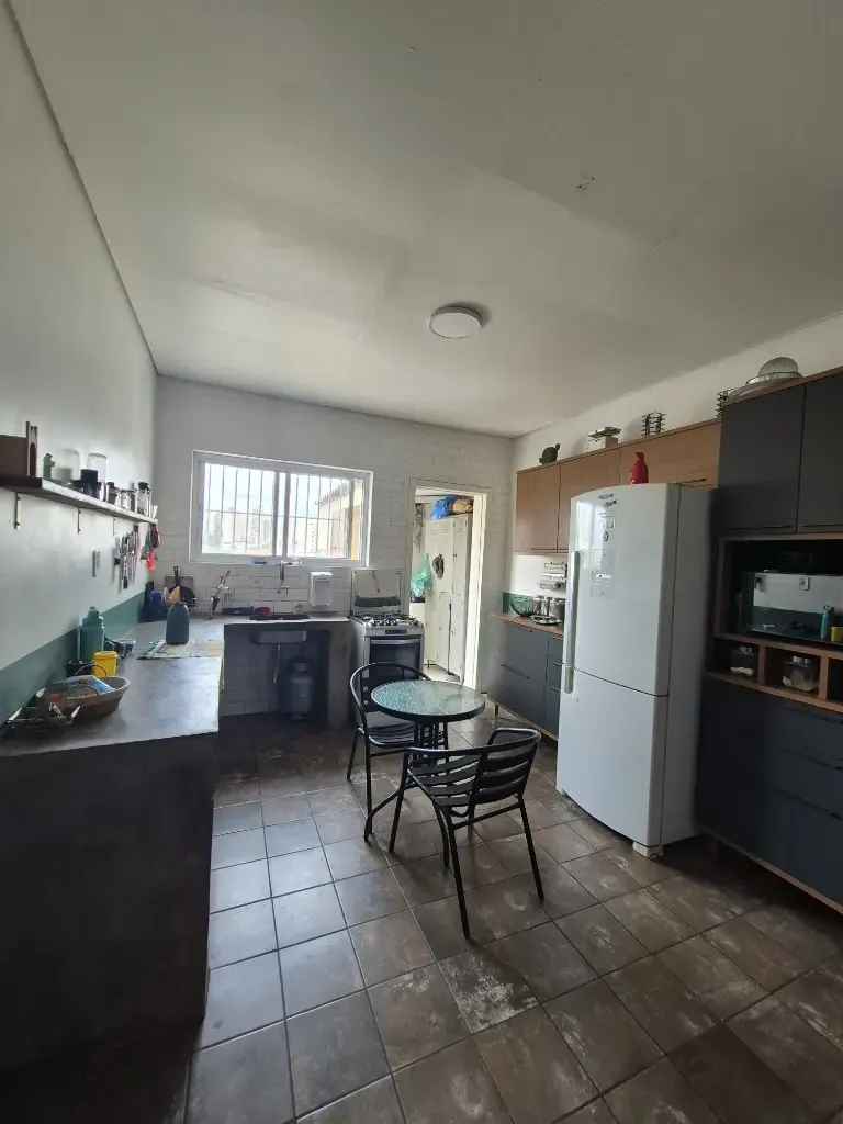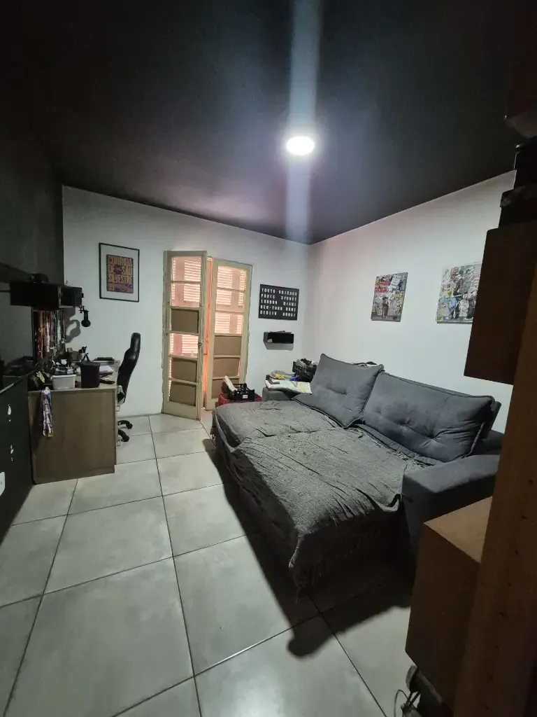 Imóvel com duas habitações, tendo 3 pavimentos, sendo 1 apto no piso superior com 2 dormitório sendo 1 suite, sala 2 ambientes, área com churrasqueira, lavanderia, banheiro social/dispensa, sem vaga de garagem. No piso térreo um salão comercial, que está alugado com um subsolo e quintal, possuindo 2 banheiros.