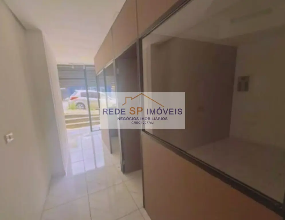 O imóvel fica no térreo, de frente para a rua, e já possui divisórias internas, dividindo o espaço em duas salas.