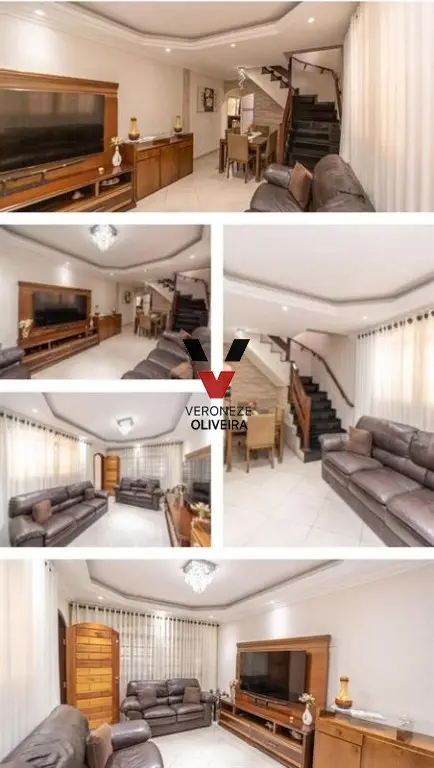 Sobrado com 03 dormitórios, sendo 01 suíte espaçosa com ar condicionado, armário, sacada com vidro fumê, sala com 02 ambientes, cozinha planejada, 03 banheiros, edícula com dois andares, lavanderia com móveis planejados, garagem coberta para 02 carros lado a lado, portão eletrônico, área gourmet com churrasqueira e teto retrátil, corredor lateral. Área inteira com porcelanato, área externa com piso antiderrapante.