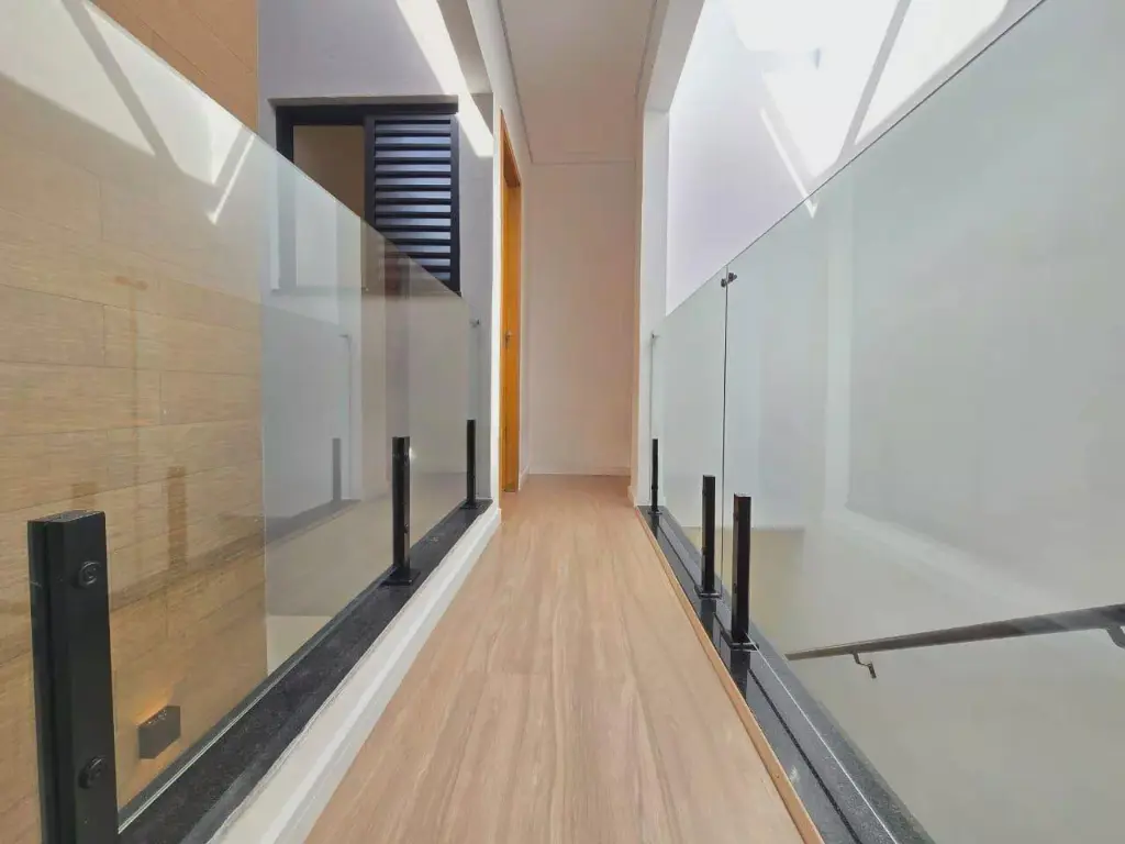 Este é o espaço reservado para o descanso. São 03 suítes espaçosas, sendo uma delas com sacada, garantindo privacidade e tranquilidade. A escada central conta com teto de vidro, valorizando a entrada de luz natural e criando uma atmosfera ainda mais aconchegante no interior do imóvel.