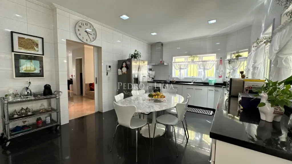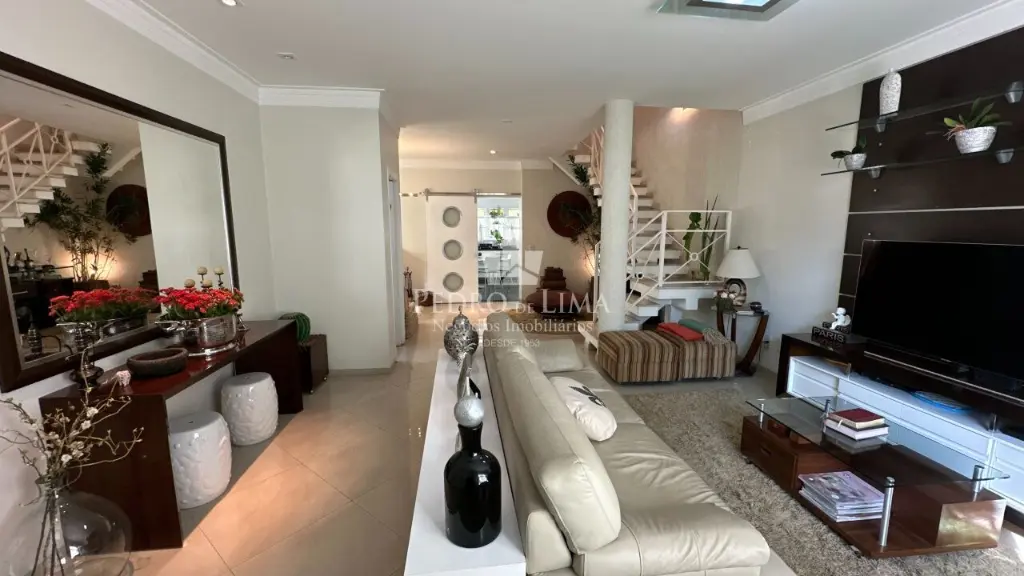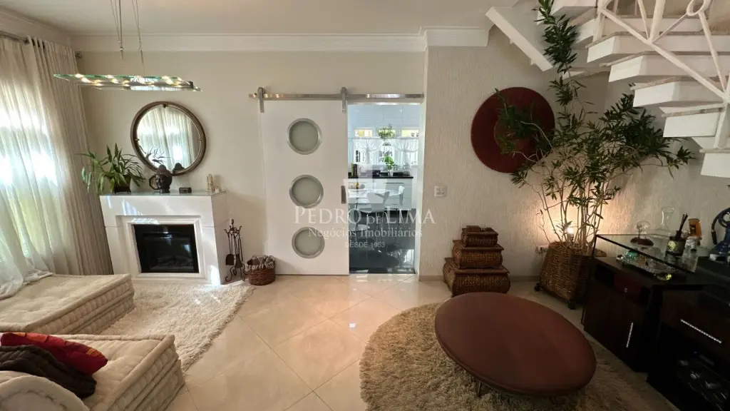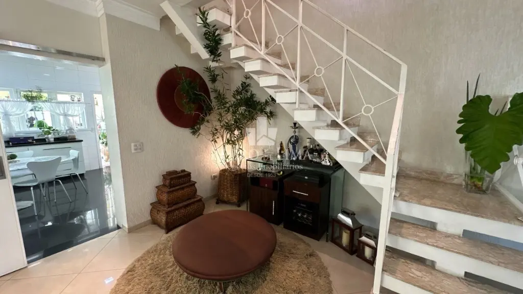 O nível térreo com salas de jantar, estar e múltiplos ambientes todos integrados e com porcelanato.