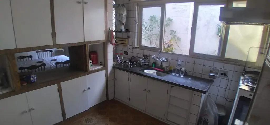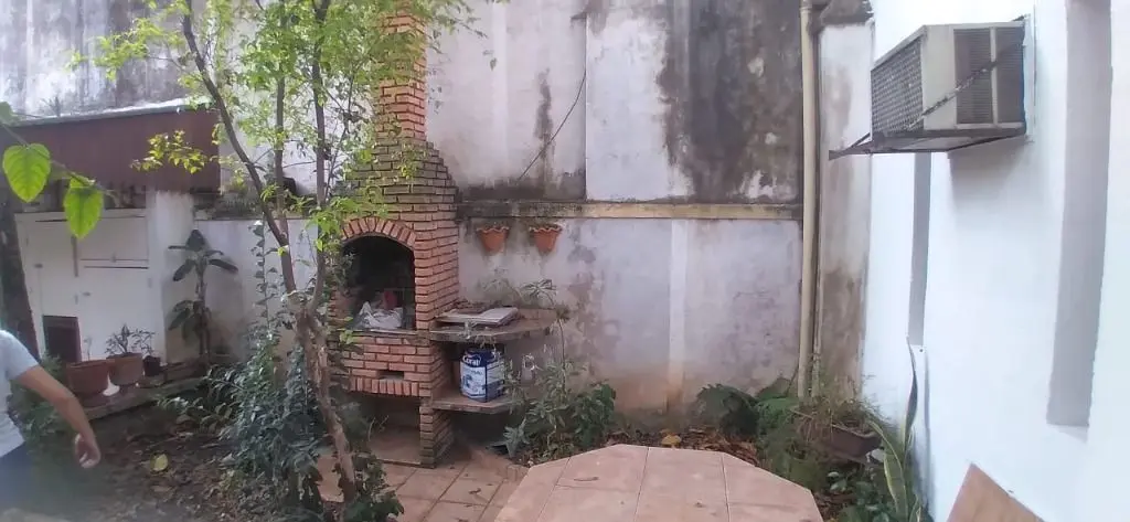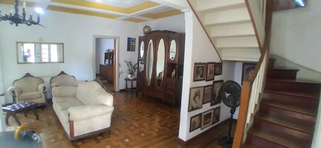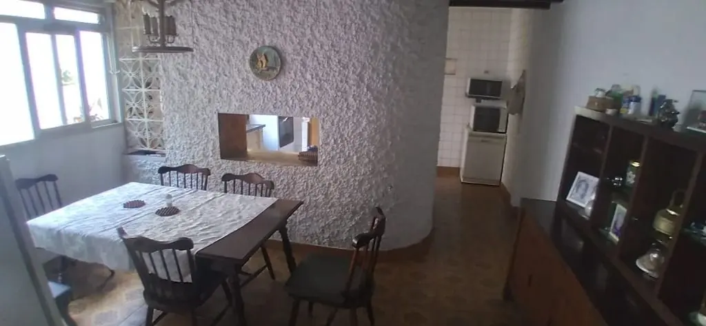 Um escritório, ampla sala de estar, sala de jantar com cozinha americana, lavabo, despensa, ampla lavanderia. Uma suíte, um quarto pequeno, um salão de festas com pia de cozinha, lavabo e dois banheiros, um estúdio e um quintal grande.