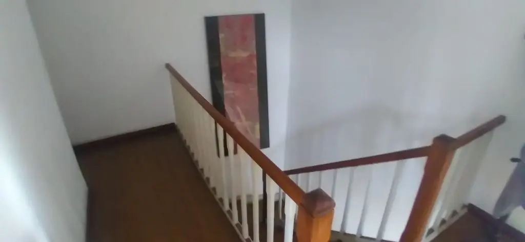 Na parte superior, temos 3 dormitórios, um amplo banheiro e uma suíte, sacada e um terraço grande.