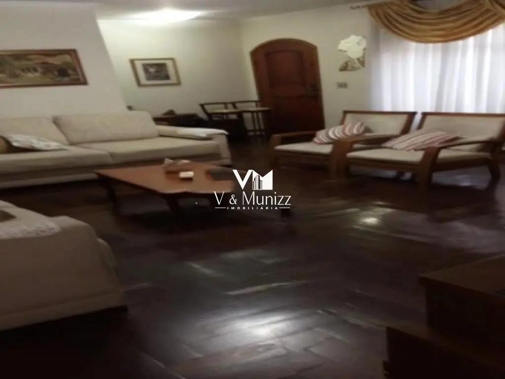 sala para 3 ambientes, cozinha, 4 banheiros, lavabo, área de serviço, quintal com edícula, dependência e banheiro de empregada e 6 vagas de garagem.