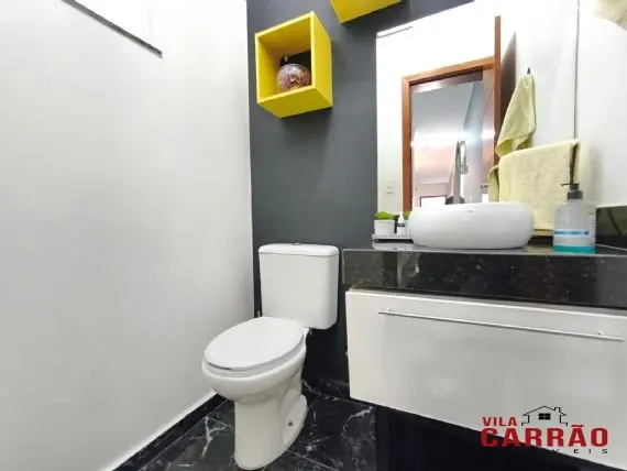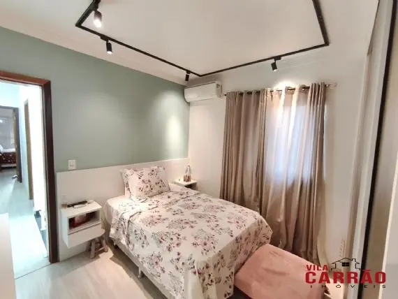 Sobrado com excelente padrão de acabamento, com todos os cômodos grandes e com ar-condicionado em 2 suítes, além de possuir 2 ótimas vagas de garagem paralelas e para veículos grandes!