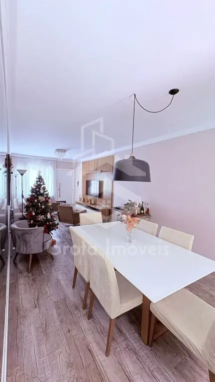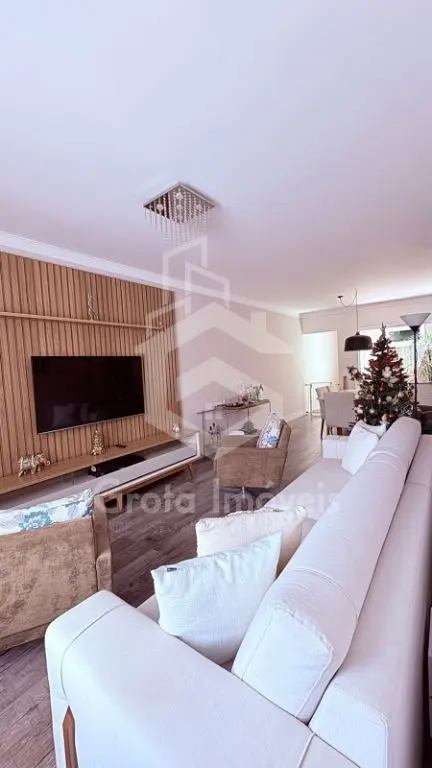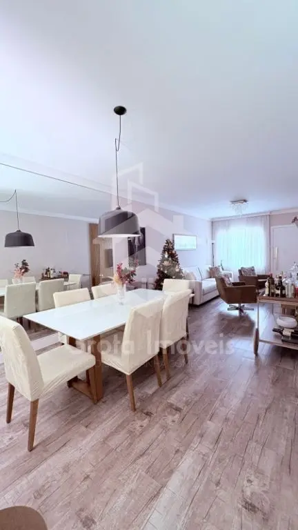 Ampla sala de estar com sacada e Jardim de inverno, sala de jantar, lavabo, cozinha e lavanderia.
