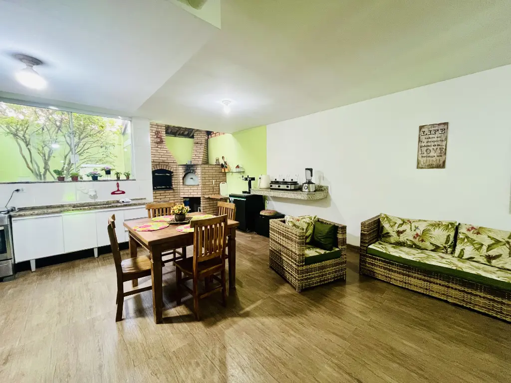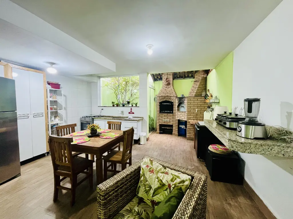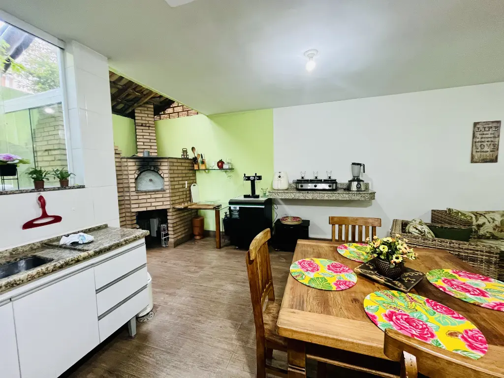 - LINDO ESPAÇO GOURMET COM COZINHA PLANEJADA COMPLETA, CHURRASQUEIRA E FORNO À LENHA;