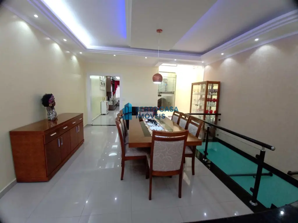 Sala com moveis planejado de primeira linha teto com sanca e vitral e luzes ambiente e sala de jantar com moveis