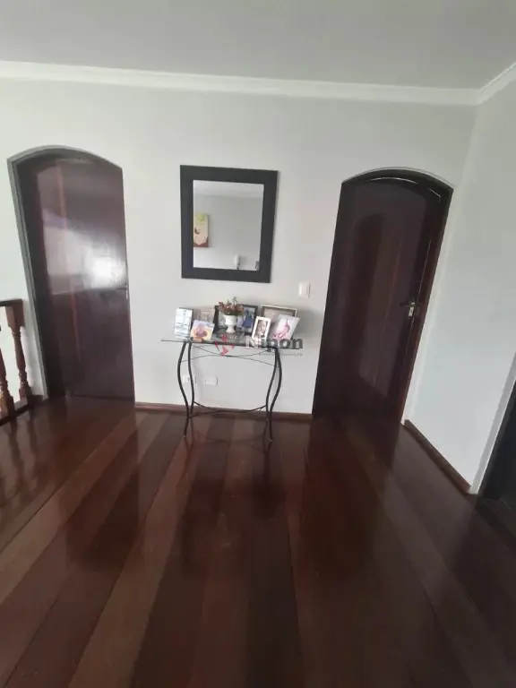 Piso em madeira nos dormitórios, hall, salas e escada.