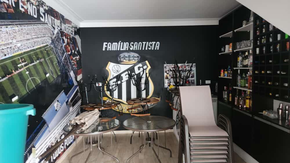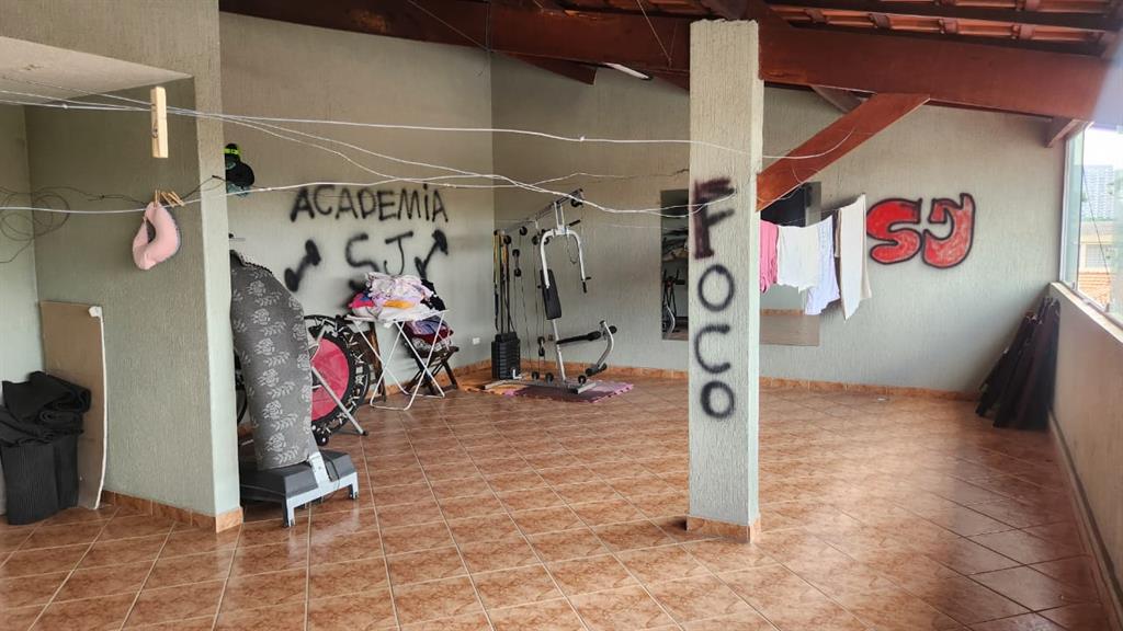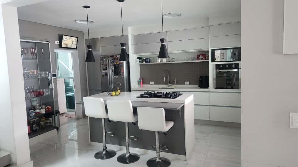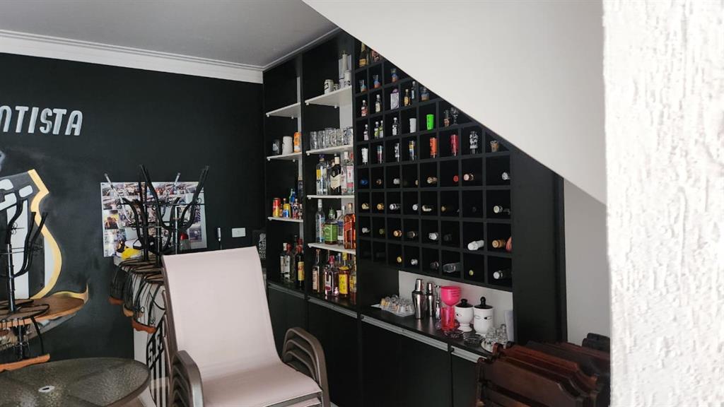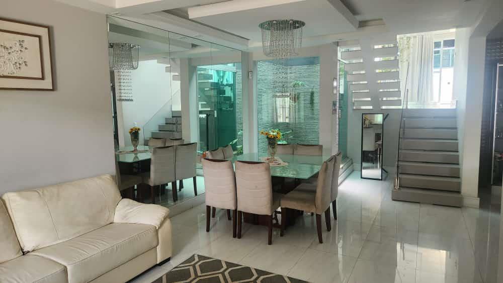 A área externa do sobrado não deixa a desejar, com um amplo quintal com piscina, área gourmet com churrasqueira e bancadas em granito, espaço para sala de jogos e até mesmo um bar. A parte superior do imóvel ainda oferece uma sala adicional, que pode ser utilizada como sala de fitness ou sala de TV, além de mais uma suíte e área de serviço.